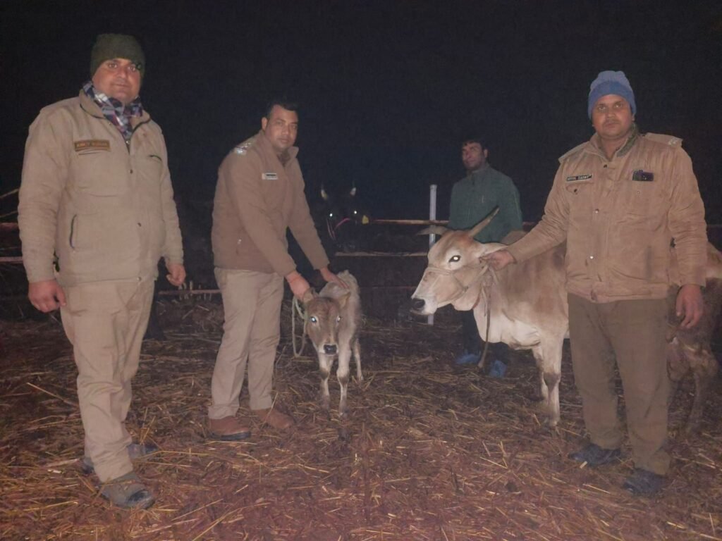 वाहन में 03 गौवंश पशु रस्सियों से क्रूरता पूर्वक बंधे पाए गए। पुलिस ने तत्परता दिखाते हुए पशुओं को मुक्त कराया। मौके पर वाहन के पास एक खंडहर कमरे से गौकशी के उपकरण गंडासा, छुरा, लकड़ी का गुटका बरामद हुए।