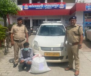 कोतवाली ज्वालापुर व ANTF की संयुक्त टीम द्वारा थाना ज्वालापुर क्षेत्र में मुखबीर की सूचना पर ट्रासपोर्ट नगर सराय रोड ज्वालापुर से एक व्यक्ति मोनू शर्मा पुत्र स्व. बृजभूषण शर्मा उम्र 28 वर्ष, निवासी मौ. रामपुरी थाना सिविल लाईन मु.नगर, हाल निवासी देवपुरा कालोनी जगजीतपुर, थाना कनखल हरिद्वार को वाहन कार स्विफ्ट डिजायर रंग सफेद नं.- UK07TA/8997 (टैक्सी नम्बर) से गाँजे की तस्करी करते हुए 20.538 किलो गांजा के साथ दबोचा गया।