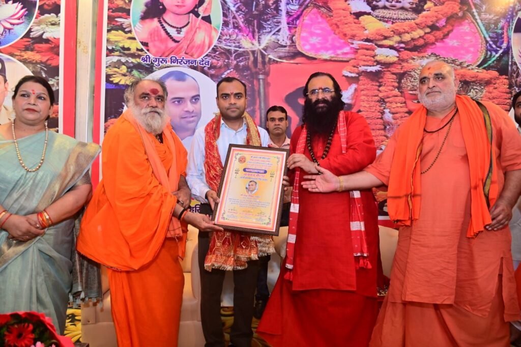 शिवराज यादव / हरिद्वार। पंचायती अखाड़ा श्री निरंजनी के श्री मनसा देवी चरण पादुका मंदिर परिसर में आयोजित सम्मान समारोह में जिलाधिकारी मयूर दीक्षित और वरिष्ठ पुलिस अधीक्षक प्रमेंद्र सिंह डोबाल को सम्मानित किया गया। कांवड़ मेला सकुशल संपन्न होने के बाद शुक्रवार को श्री मनसा देवी मंदिर ट्रस्ट एवं अखिल भारतीय अखाड़ा परिषद अध्यक्ष श्रीमहंत रविंद्र पुरी ने पुलिस और प्रशासनिक अधिकारियों को स्मृति चिह्न और प्रशस्ति पत्र देकर सम्मान किया।