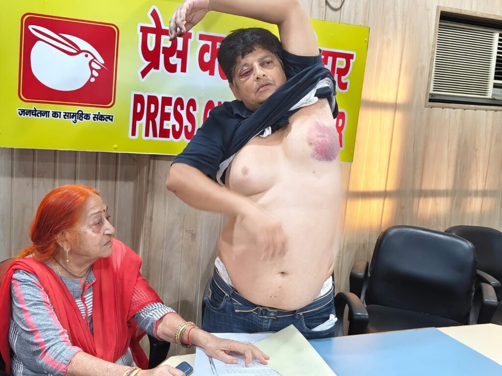 शिवराज यादव / हरिद्वार। खन्ना नगर निवासी व्यवसायी आशीष कुमार गुप्ता ने प्रेस क्लब हरिद्वार में पत्रकारवार्ता के दौरान मारपीट करने का आरोप लगाते हुए पुलिस से कार्रवाई की मांग की है। पत्रकारों को जानकारी देते हुए आशीष कुमार गुप्ता ने बताया कि किसी काम से सड़क से अपने पुत्र के साथ जा रहे थे। इस दौरान दो अज्ञात व्यक्तियों ने उन पर हमला कर दिया। आशीष गुप्ता ने बताया कि असामाजिक तत्वों द्वारा उन्हें बुरी तरह से लाठी-डंडों से पीटा। जिससे आंख व चेहरे पर काफी चोटे आयी हैं। पुत्र पर भी उनके द्वारा हमला किया गया। आशीष गुप्ता ने कहा कि पूर्व में भी मेरे साथ मारपीट की गयी थी। उन्होंने गंभीर आरोप लगाते हुए कहा कि व्यसायी सुमित सचदेवा के इशारे पर मेरे साथ मारपीट की गयी है। सुमित सचदेवा पर मेरे निर्माण किए जाने की धनराशि बकाया है। कई बार इस बात को लेकर मैने पेमेंट करने की बात कही। लेकिन वह मेरे पैसे नहीं लौटा रहा है। सुमित सचदेवा रसुखदार है। धनबल का प्रयोग कर मुझे दबाने का प्रयास कर रहा है। आशीष कुमार गुप्ता ने अपने परिवार की जानमाल व सुरक्षा की गुहार लगाते हुए पुलिस से सख्त कार्रवाई की मांग की है। आशीष गुप्ता ने बताया कि उन्होंने ज्वालापुर पुलिस को तहरीर भी दी है। इसके पूर्व एसएसपी कार्यालय में भी प्रार्थना देकर कार्रवाई की मांग की गयी थी। पत्रकार वार्ता के दौरान आशीष कुमार गुप्ता की माता संतोष भी मौजूद रही।