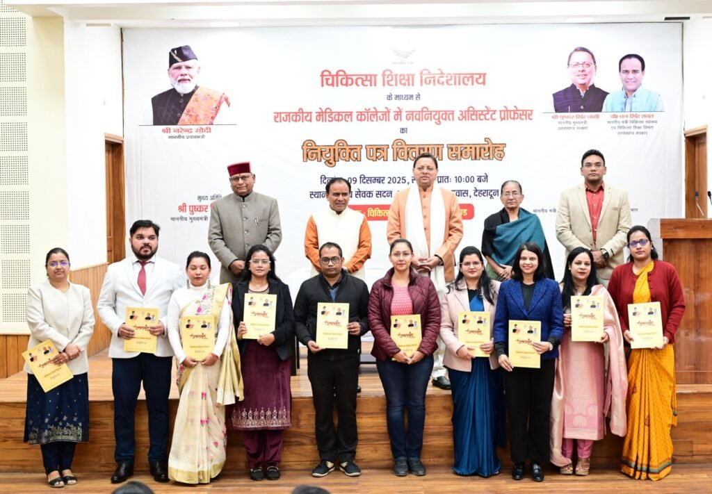 राजकुमार / उत्तराखण्ड / देहरादून। मुख्यमंत्री पुष्कर सिंह धामी ने मंगलवार को मुख्य सेवक सदन, मुख्यमंत्री आवास, देहरादून में आयोजित कार्यक्रम में प्रतिभाग करते हुए चिकित्सा सेवा चयन बोर्ड के माध्यम से चयनित राजकीय मेडिकल कॉलेजों में 142 असिस्टेंट प्रोफेसर्स को नियुक्ति पत्र वितरित किए।