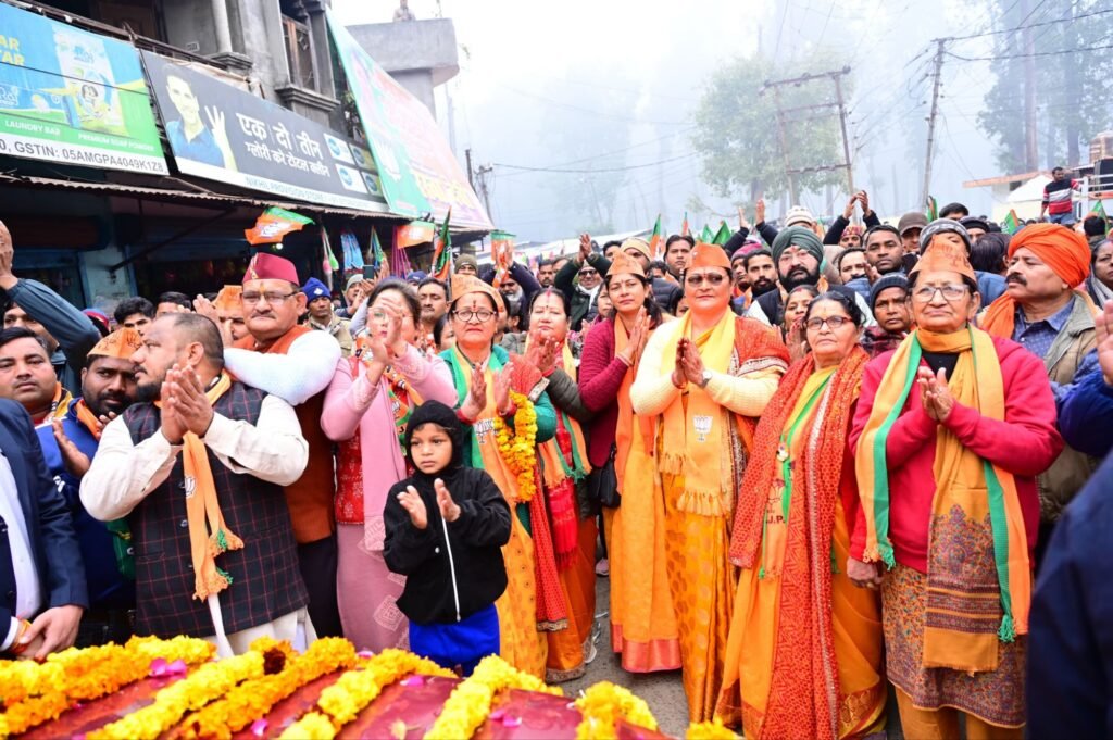 शिवराज यादव / उत्तराखण्ड / चम्पावत। मुख्यमंत्री पुष्कर सिंह धामी ने बनबसा, चंपावत नगर पंचायत से भाजपा की अध्यक्ष पद प्रत्याशी श्रीमती रेखा देवी एवं अन्य सभासद प्रत्याशियों के पक्ष में रोडशो कर वोट अपील की। रोडशो के बाद मुख्यमंत्री ने जनसभा को भी संबोधित किया।