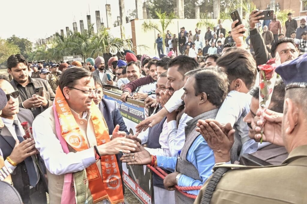 शिवराज यादव / हरिद्वार। सोमवार को हरिद्वार के गुरुकुल कांगड़ी हेलिपैड पर किसानों ने मुख्यमंत्री पुष्कर सिंह धामी का उत्साहजनक स्वागत किया। किसानों, जनप्रतिनिधियों तथा स्थानीय अधिकारियों ने फूलों की माला पहनाकर, पुष्पवर्षा कर और गन्ना भेंट कर मुख्यमंत्री का अभिनंदन किया। उपस्थित किसानों ने सम्मान स्वरूप उन्हें “किसान पुत्र” की उपाधि से सम्मानित भी किया।