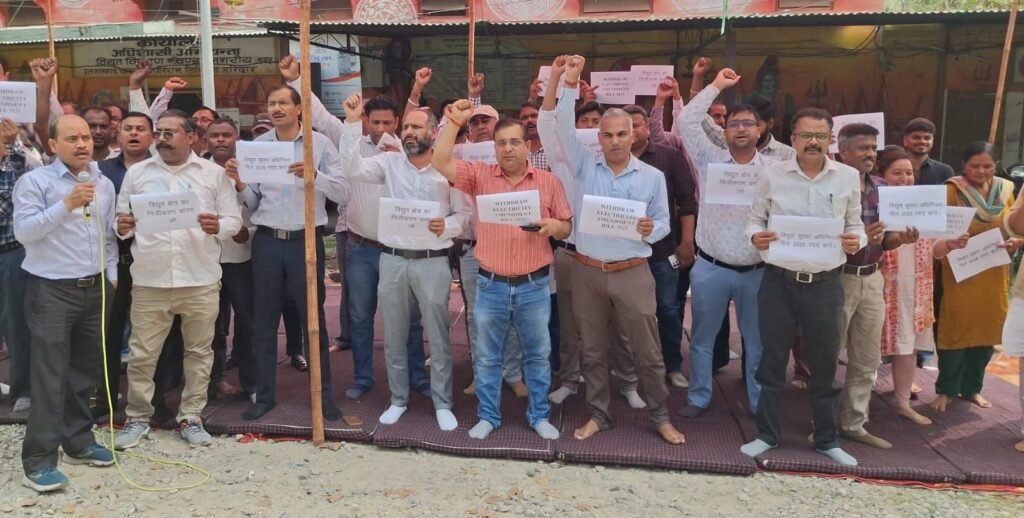 शिवराज यादव / हरिद्वार। विद्युत संशोधन बिल के विरोध में ऊर्जा निगम के अधिकारियों और कर्मचारियों ने कार्य बहिष्कार कर केंद्र सरकार के खिलाफ धरना प्रदर्शन किया और बिल वापस लेने की मांग की। प्रदर्शन कर रहे अधिकारियों और कर्मचारियों ने केंद्र सरकार के विद्युत एमेण्डमेन्ट बिल-2025 वापस नहीं लेने पर आंदोलन की चेतावनी भी दी। ऑल इंडिया पावर इंजीनियर्स फेडरेशन और विद्युत अधिकारी कर्मचारी संयुक्त संघर्ष मोर्चा के आह्वान पर मायापुर स्थित ऊर्जा निगम कार्यालय पर प्रदर्शन के दौरान अभियंता संघ के उपाध्यक्ष अनिल कुमार मिश्रा ने आरोप लगाया कि सरकार ऊर्जा क्षेत्र का निजीकरण करने जा रही है। इसलिए विद्युत संशोधन बिल को संसद में पेश करने की तैयारी की जा रही है। अनिल मिश्रा ने आरोप लगाया कि पूंजीपतियों को लाभ पहुंचाने के लिए बिल लाया गया है। यदि यह बिल पास होता है, तो आने वाले समय में निजी कंपनियां अपनी मनमर्जी के अनुसार उपभोक्ता चुनेंगी। बीपीएल, किसान और मजदूर वर्ग को सस्ती बिजली नहीं देंगे। इसके साथ ही ऊर्जा निगम के कर्मचारियों और अधिकारियों की नौकरी खतरे में आ जाएगी। निजी क्षेत्र की कम्पनियां मनमाने ढंग से कार्य करेंगी। बिल ऊर्जा निगम के अधिकारियों और कर्मचारियों की उपेक्षा का प्रयास है। ऊर्जा निगम के अधिशासी अभियंता दीपक सैनी ने चेतावनी देते हुए कहा यदि सरकार विद्युत संशोधन बिल 2025 को वापस नहीं लेती है तो आंदोलन को और तेज किया जाएगा। नेशनल कोऑर्डिनेशन कमेटी ऑफ इलेक्ट्रिसिटी एम्प्लॉईज एंड इंजीनियर्स के आह्वान पर उत्तराखंड के सभी विद्युत अधिकारी और कर्मचारी बड़े स्तर पर आंदोलन करने को बाध्य होंगे। जिसकी पूरी जिम्मेदारी सरकार की होगी। प्रदर्शन करने वालों में अधिशासी अभियंता दीपक सैनी, अनूप सैनी, आशुतोष तिवारी, सैयद सिराज उस्मान, सहायक अभियंता प्रियंका अग्रवाल, अश्वनी कुमार, आलोक चौहान, मनोज कंसल, रीता राजपूत, अमित कुमार, दिवाकर गौड़, लेखाकार मुकेश वार्ष्णेय, हेमंत मलिक, आई.पी.सिंह, सचिव स्वयं सहायता समूह सुनील कुमार, प्रदीप बलौदी, सत्य प्रकाश, कुलदीप सिंह, दिव्या चौधरी, सुनील कुमार, रिजवान अली, राहुल कुमार, नीरज कुमार, सुनील कुमार, धर्म सिंह, सुशील कुमार, मनीष चंचल, संजय चौहान, मोमिन हसन, राकेश कुमार, नरेश कुमार, मनीष कुमार, कपिल उप्रेती, सूरज उप्रेती, सौरभ कुमार, राजेश कुमार, सोन सिंह कश्यप, संदीप, राजेश पाल, जितेंद्र कुमार, लता, नीलम रानी, गौरव कुमार समेत अन्य विद्युत अधिकारी और कर्मचारी शामिल रहे।
