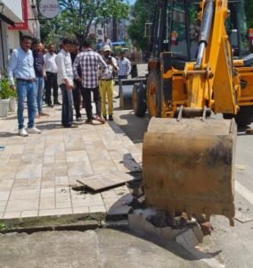 राजकुमार / हरिद्वार। वरिष्ठ नगर स्वास्थ्य अधिकारी/अतिक्रमण प्रभारी नगर निगम हरिद्वार डॉ. गम्भीर सिंह तालियान ने अवगत कराया कि जिलाधिकारी मयूर दीक्षित के निर्देशों के क्रम में एवं नगर आयुक्त नगर निगम हरिद्वार नन्दन कुमार के निर्देशन में गुरुवार को नगर निगम हरिद्वार द्वारा उनके नेतृत्व में टीम गठित कर अतिक्रमण हटाओं अभियान चलाया गया। उन्होंने अवगत कराया गया कि नगर निगम की टीम द्वारा चन्द्राचार्य चौक से प्रेमनगर आश्रम के पुल तक अतिक्रमण हटाओं अभियान चलाया गया, इस दौरान स्थायी अतिक्रमण को धवस्त किया गया साथ ही होर्डिंग्स को हटाया गया एवं अतिक्रमणकारियों का सामान जब्त किया गया तथा दोबारा अतिक्रमण न किये जाने हेतु सभी को कड़ी चेतावनी भी दी गयी। उन्होंने अवगत कराया कि अतिक्रमण के खिलाफ नगर निगम द्वारा निरन्तर अभियान जारी रहेगा।