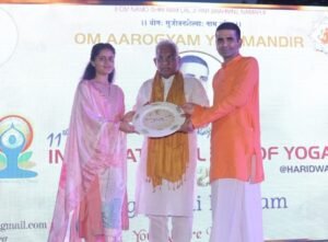 राजकुमार / हरिद्वार। शनिवार को ओम आरोग्यं योग मंदिर ट्रस्ट द्वारा 11वें अंतर्राष्ट्रीय योग दिवस का आयोजन संध्याकाल में गौतम फार्म कनखल में किया गया कार्यक्रम का शुभारंभ संस्था के अध्यक्ष योगी रजनीश के साथ मुख्य अतिथि विधायक मदन कौशिक हरिद्वार, डॉ.ललित नारायण मिश्रा अपर निदेशक शहरी विकास निदेशालय, अनुपम द्विवेदी संयुक्त निदेशक उद्योग, श्री गंगा सभा अध्यक्ष नितिन गौतम, रोहन सहगल, डॉ.विशाल गर्ग, डॉ.राजेंद्र पाराशर, पं.अधीर कौशिक, राधिका नागरथ, नेहा मलिक, माधवी भट्टाचार्य, अर्चना शर्मा आदि ने संयुक्त रूप से किया। कार्यक्रम को संचालित करते हुए योगी रजनीश ने कहा कि बहुत हर्ष का विषय है कि संस्था ने आज 11वेंअंतर्राष्ट्रीय योग दिवस का आयोजन किया है जिसमे सम्मलित होने पर आप सभी का हार्दिक अभिनंदन। योग किसी एक दिन का विषय नहीं है अपितु एक साधना है, एक अभ्यास है जो प्रतिदिन करना आवश्यक है तभी लाभ प्राप्त होता है। इसी हेतु संस्था योग दिवस पर योग जागृित कार्यक्रम का आयेजन करती है जिससे सभी को योग के प्रति जागरूक किया जा सके।
