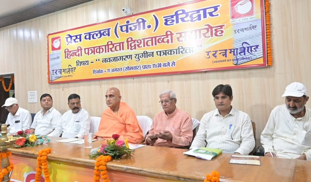 पत्रकारों की सम्मानित संस्था प्रेस क्लब (रजि.) हरिद्वार के सभागार में हिंदी द्वि-शताब्दी समारोह का शुभारंभ शानदार अंदाज में किया गया। कार्यक्रम का शुभारंभ दीप प्रज्वलन के साथ किया गया। कार्यक्रम में मुख्य वक्ता के तौर पर उपस्थित माधवराव सप्रे संग्रहालय भोपाल के संस्थापक विजयदत्त श्रीधर ने हिंदी पत्रकारिता के 200 वर्षों की यात्रा का बखूबी चित्रण करते हुए कहा कि पूरे भारतवर्ष में हिंदी पत्रकारिता के 200 वर्ष पूर्ण करने के उपलक्ष्य में व्याख्यान माला आयोजित करने वाला प्रेस क्लब हरिद्वार पहला संगठन है। इसके लिए प्रेस क्लब अध्यक्ष महासचिव संयोजक मंडल सहित सभी सदस्यों को साधुवाद देते हैं। उन्होंने कहा कहा पूरे भारत वर्ष में इस प्रकार के कार्यक्रम आयोजित करने के लिए प्रेस क्लब हरिद्वार से प्रेरणा लेनी चाहिए। विजय दत्त श्रीधर ने कहा कि पत्रकारिता में दो प्रकार के शास्वत सत्य है। पहला नारद संचालक, जों लोक-मंगल की कामना से सूचनाओं का संप्रेषण करते हैं और दूसरा पौराणिक आख्यान महाभारत से है जहां नेत्रहीन धृतराष्ट्र को संजय कुरूक्षेत्र का हाल सुनाते हैं। उन्होंने कहा फेंक न्यूज की शुरुआत महाभारत काल से हुई। जब द्रोणाचार्य को युद्ध से अलग करने के लिए धर्मराज युधिष्ठिर से झूठ बुलवाया गया। उन्होंने कहा फेक न्यूज लोकतंत्र के लिए भारी खतरा है। कानूनी तरीके से इसे रोकना संभव नहीं है। इसके वरिष्ठ पत्रकारों को भावी पीढ़ी को संस्कारित शिक्षा देनी होगी।