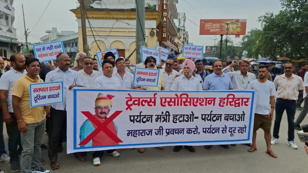 शिवराज यादव / हरिद्वार। अन्य राज्यों की ट्रैवल कंपनियों को उत्तराखंड में कार्यालय खोलने के लिए आमंत्रित करने के पर्यटन मंत्री सतपाल महाराज के बयान पर ट्रैवल व्यवसायियों ने नाराजगी व्यक्त की है। हरिद्वार के शिव मूर्ति चौक पर इकट्ठा हुए ट्रैवल कारोबारियों ने सतपाल महाराज के खिलाफ विरोध प्रदर्शन करते हुए जमकर नारेबाजी की और पद से हटाने की मांग की। नाराजगी व्यक्त करते हुए पर्यटन कारोबारी हरीश भाटिया ने कहा कि कभी आपदा तो कभी नियमों में बदलाव के कारण चारधाम यात्रा ठीक से चल नहीं पा रही है। जिसका कारोबार पर पहले ही बुरा असर पड़ रहा है। विजय शुक्ला ने कहा कि पर्यटन मंत्री हरिद्वार के ट्रैवल कारोबारियों के साथ ना तो कभी बैठक करते हैं ना ही टैक्स माफ करने की मांग को माना जा रहा है। बावजूद इसके पर्यटन मंत्री सतपाल महाराज ने दूसरे राज्यों की ट्रैवल कंपनियों को उत्तराखंड में आकर अपने कार्यालय खोलने का न्योता दे दिया है। अगर ऐसा होता है तो स्थानीय पर्यटन कारोबारियों को नुकसान उठाना पड़ेगा। प्रदर्शन में बड़ी संख्या में ट्रैवल कारोबारी शामिल हुए।